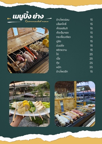 เมนูป ง ย่าง Recommended menu ข้าวโพดอ่อน 15 บร็อคโคลี 15 เห็ดออรินจิ 15 เห็ดเข็มทอ ง 15 กระเจี ยบเขียว 15 ปูอัด 15 มันฝรัง 15 พริกหวาน 15 ไก่ 25 เนือ 25 กุ้ง 25 หมึก 25 ข้าวโพดฝ{ก 15